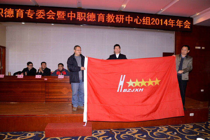 第二天会议主要就校园德育课工作进行了交流,省中等职业学校德育教研中心组长对德育课中心组年度工作作了报告,通报2014年全国中职德育课“创新杯”教学设计比赛湖北获奖情况,三位老师进行了德育课说课展示。最后德育研究会朱志平主任宣布了下一届年会由武汉市第一职业教育中心承办并交换了会旗。