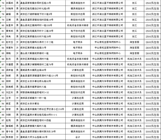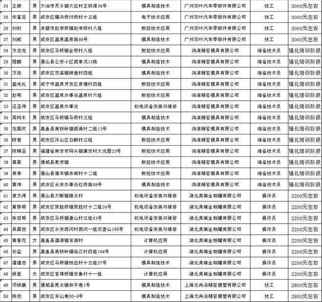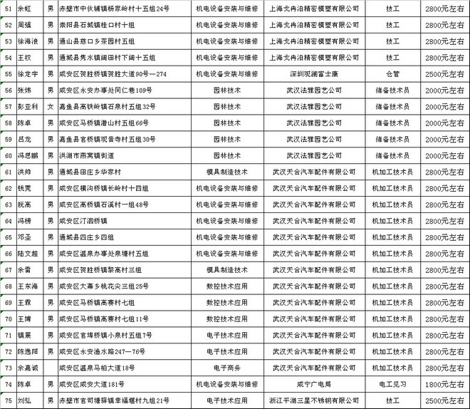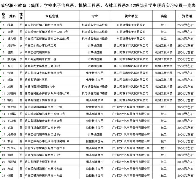 电子信息系、机械工程系、农林工程系2012级部分学生顶岗实习安置一览表