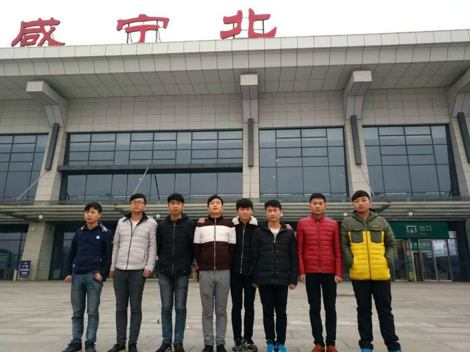 机械工程系八名数控模具专业的同学在咸宁北站合影,人生之路从这里起步