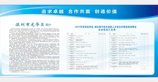 2017年在4月19~20日,我校校企合作办全程参与了“深圳龙华•湖北咸宁技术技能人才校企对接交流会”活动,并将该活动的最后一站----现场招聘会引进我校。