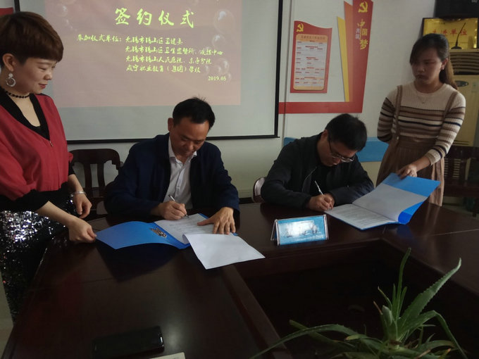 仪式上,樊校长代表集团学校与孙院长、华院长分别签订了《咸宁职业教育(集团)学校与无锡市锡山人民医院校院合作协议书》、《咸宁职业教育(集团)学校与无锡市锡山人民医院东亭分院校院合作协议书》。仪式后,院校双方在校图书馆前进行合影留念,并参观了校史馆。
