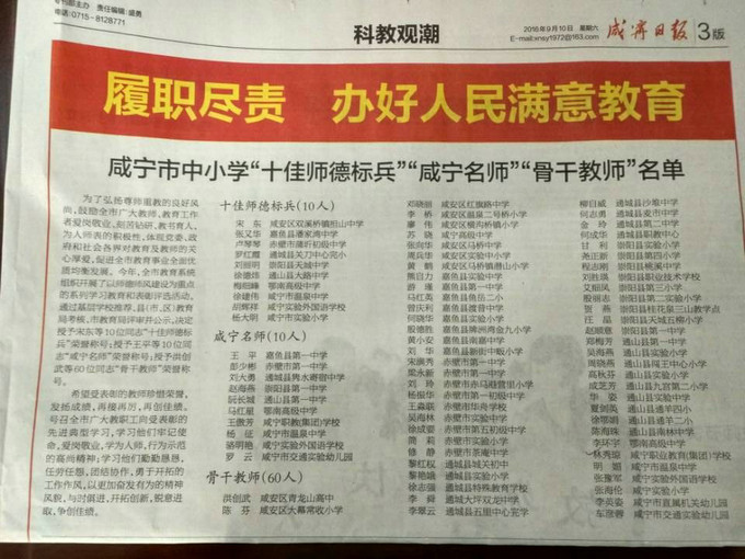 在第32个教师节来临之际,我校医药护理系王傲芳老师喜获“咸宁名师”,林秀琼老师喜获“咸宁市骨干教师”。