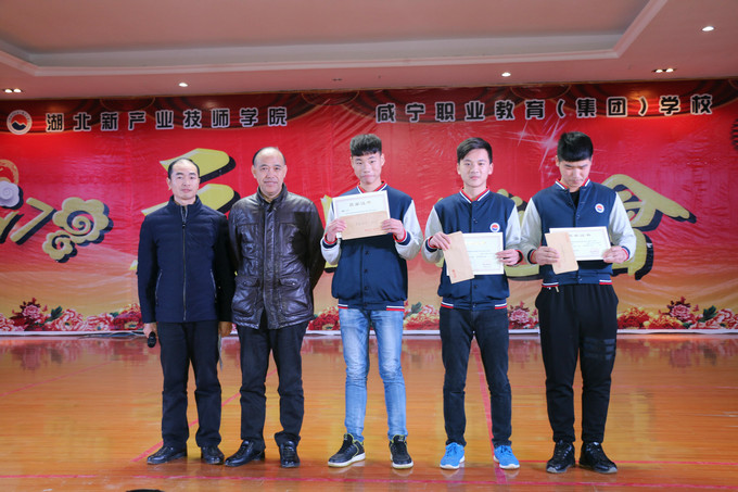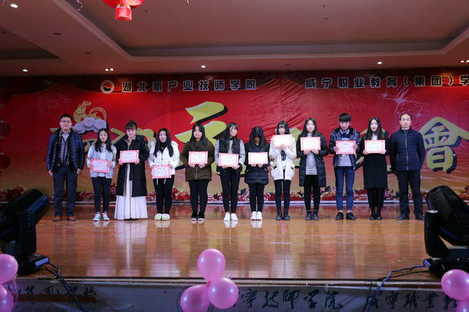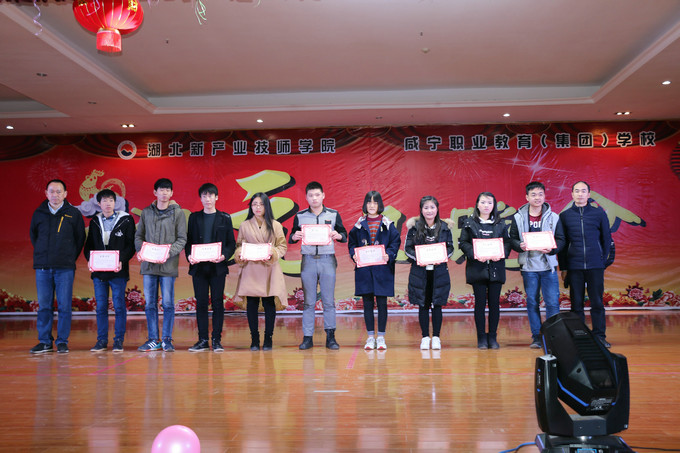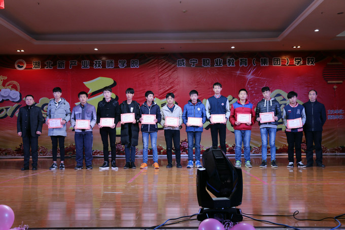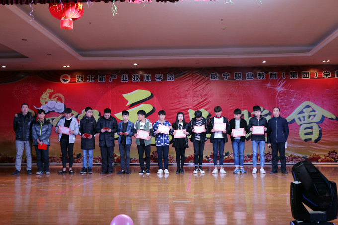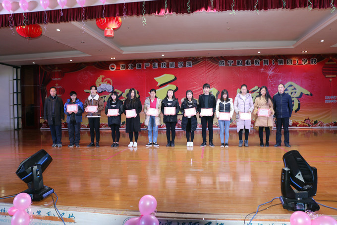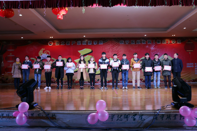12月27日晚,电子信息系在2017元旦晚会现场为获得全省电子技能大赛一、二、三等奖的汤焕、熊星、梅贤锐同学颁发了荣誉证书和奖金,为获得本系技能竞赛的68名获奖选手颁发了荣誉证书和奖品。