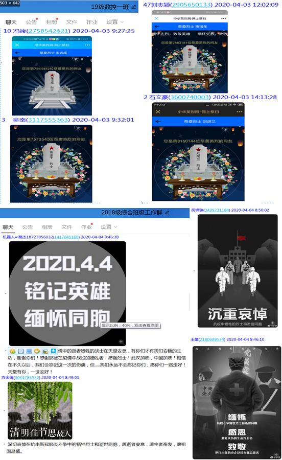 人间三月芳菲始,又是一年清明时。为表达对在抗击新冠肺炎疫情中牺牲的烈士和同胞的深切哀悼,加强对广大师生的爱国主义教育,弘扬民族精神,我系于2020年4月4日组织师生开展了以“缅怀英烈”为主题的清明节纪念活动。