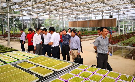 考察团队一行25人,首先观看了官桥村八组的宣传短片,通过观看宣传片,参观农博馆,了解了八组的发展历程以及今后的发展规划。谁又能想得到,这里原来是一片黄土地和穷山村。在“领头雁”周宝生的带领下,八组走上了现代农业、现代工业、高等教育、生态旅游等多业并举、多元化发展的集体经营、共同致富之路。