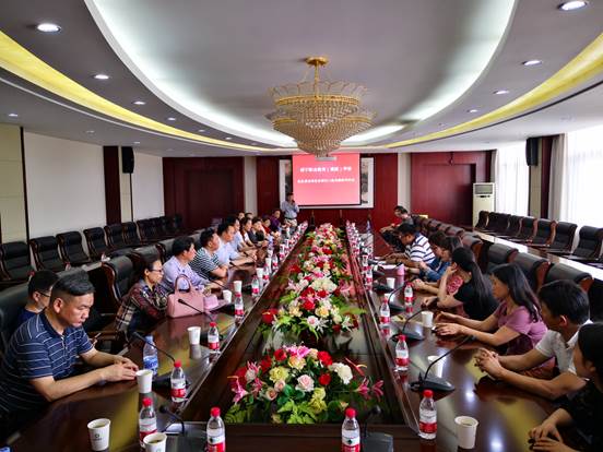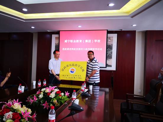 最后,在官桥八组会议室进行了座谈。田野集团李副总经理对考察团一行表示了欢迎,樊斌副校长代表学校也发表讲话,他表示非常感谢官桥八组的热情接待,咸宁职业教育(集团)学校与田野集团进一步加强思政课实践教学基地共建,同时祝愿官桥八组未来的路越走越宽。宾主双方进行了“思政课实践教学基地”授牌仪式。