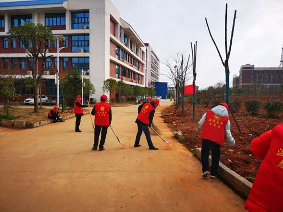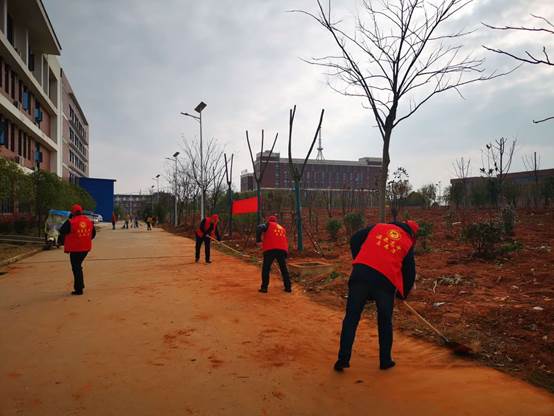 3月12日,我校全体党员在主题党日活动后,积极开展“+”活动,党员志愿者们穿上红马甲,戴上小红帽,与团委组织的高一年级各班志愿者代表60余人,拿起扫帚、铁锹等清扫工具,来到学校跑操道路区域进行打扫。大家都发扬不怕脏、不怕累的吃苦精神,分工合作,井然有序地进行着清扫工作,清理水泥路面,铲除污泥和杂草,为卫生校园、文明校园和美丽校园建设贡献一份力量。