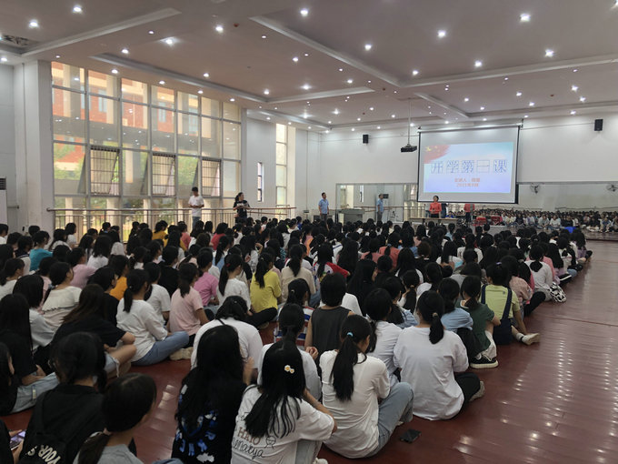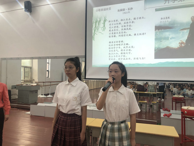 老师生情并茂的领读后,学生代表抑扬顿挫、铿锵有力的诵读。最后老师还对学生们寄予期望,“恰同学少年,风华正茂”;“此时不努力,更待几何时”。