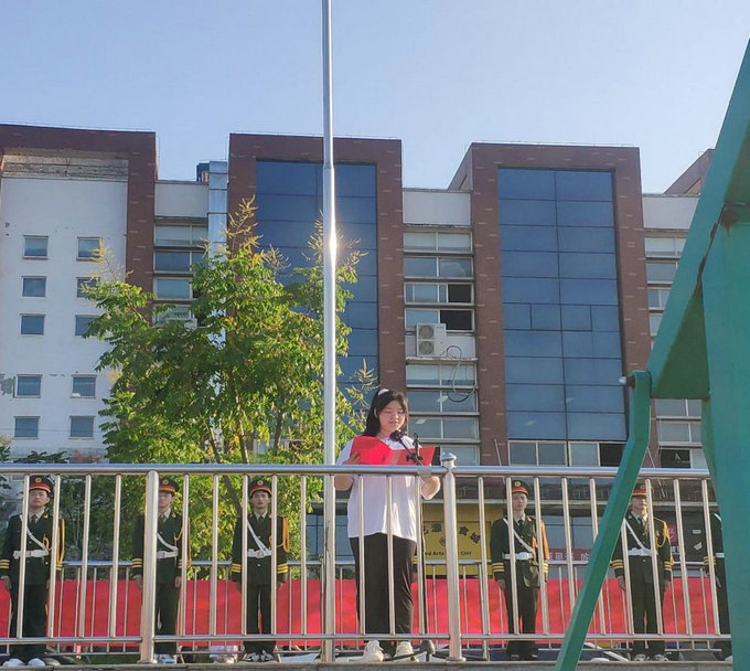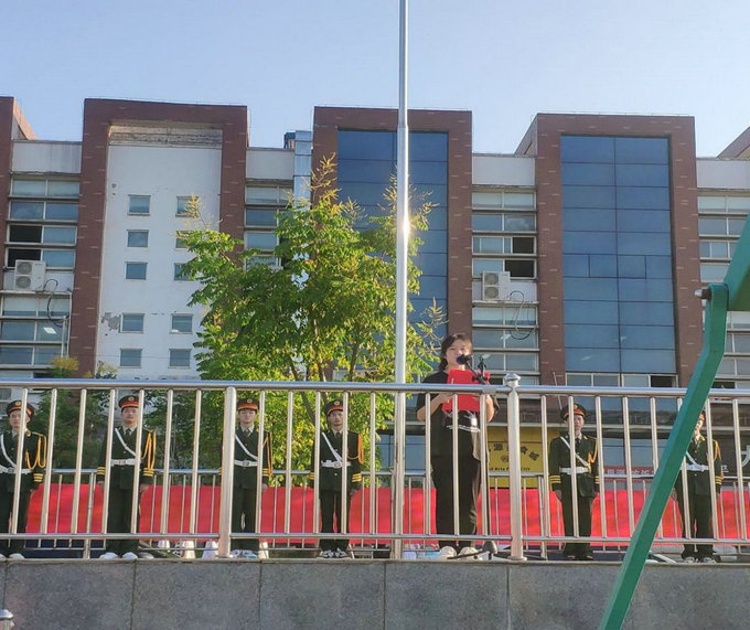 开学典礼在升旗仪式中拉开序幕,在庄严雄壮的国歌声中,鲜艳的五星红旗冉冉升起,全体师生行注目礼,齐唱国歌。