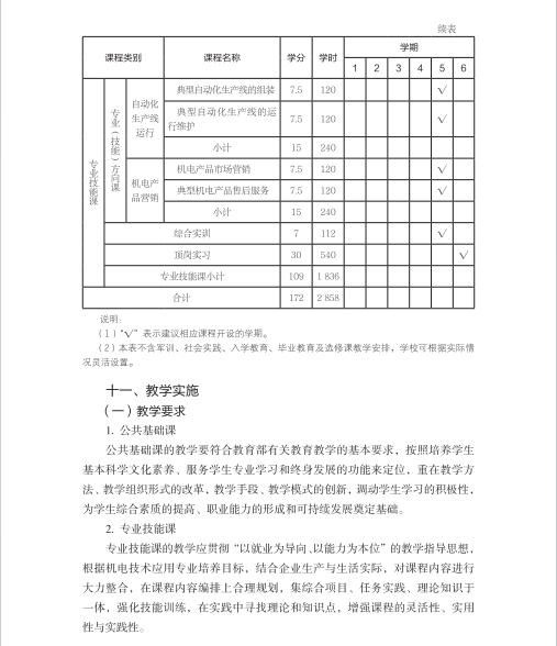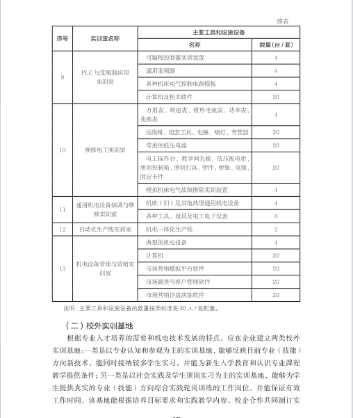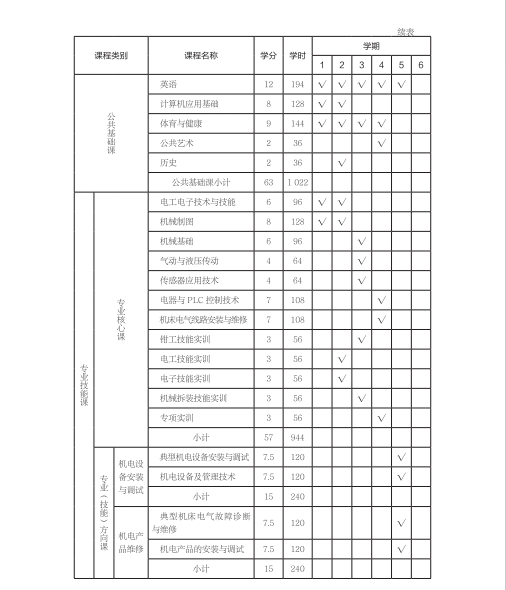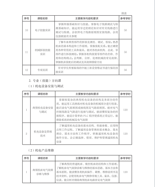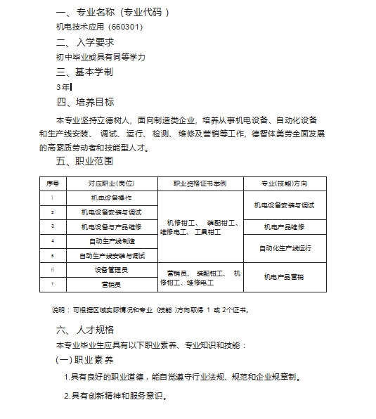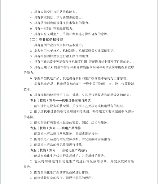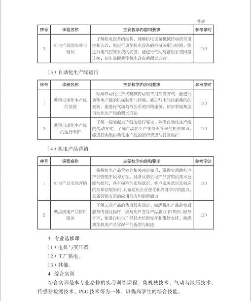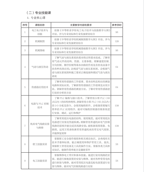 机电技术应用专业人才培养方案