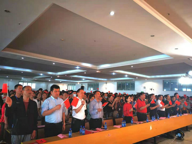 上午八点半,在学生活动中心,全体师生挥舞国旗齐唱《歌唱祖国》,活动在雄壮的的歌声中拉开帷幕,咸宁职业教育(集团)学校副校长樊斌同志致开幕词。咸宁职业教育(集团)学校党委书记杨金焱,纪委书记程星,副校长毛三列,工会主席任贤俊,温泉高中负责人王林,以及集团学校党办、学工等多个部门的负责同志参与此次活动。此次活动我校还邀请了三十多位家长代表参与,共同见证孩子的成长。