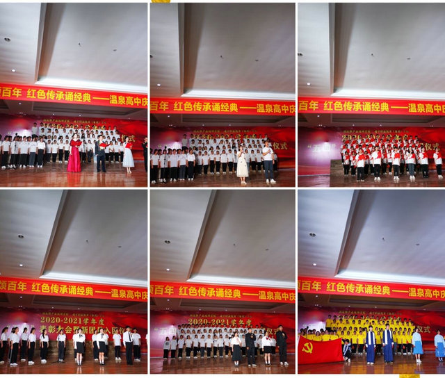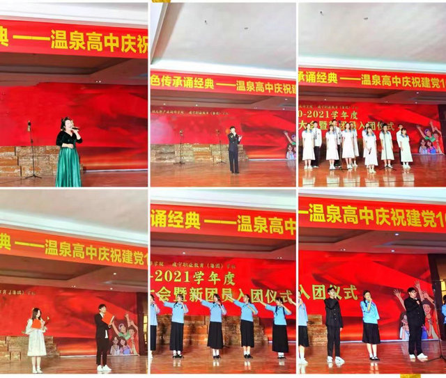 为庆祝中国共产党成立100周年,深入推进学校党史学习教育,引导全体师生坚定不移听党话、跟党走,5月25日,温泉高中举行了以“红心向党颂百年、红色传承诵经典”为主题的庆祝建党100周年唱红歌、朗经典系列展演活动。