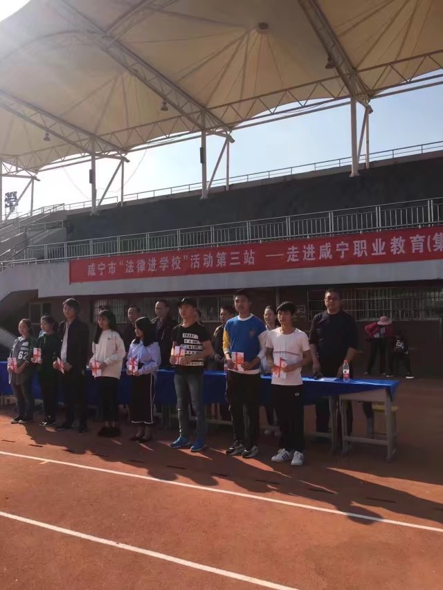 在党的十九大胜利召开之际,咸宁职业教育(集团)学校为增强青少年学生的法制观念,有效的预防和减少青少年违法犯罪,维护学校稳定,创建文明平安校园。在校党委的高度重视下,2017年10月27日下午14:30在校田径运动场举办咸宁市“法律进学校”活动第三站——走进咸宁职业教育(集团)学校。