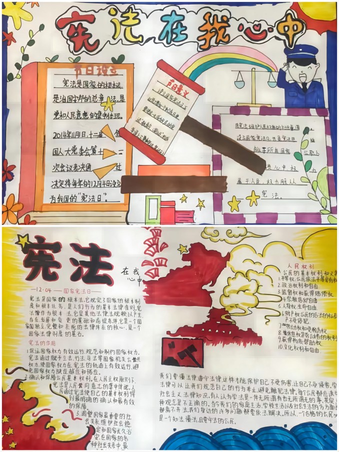 活动形式多样,各系部班主任认真组织授课,同学们一个个的都在聚精会神的听讲,有的系部进行了宪法诵读,有的系部组织宪法知识比赛,有的系部制作了手抄报,有的系部制作了黑板报等。