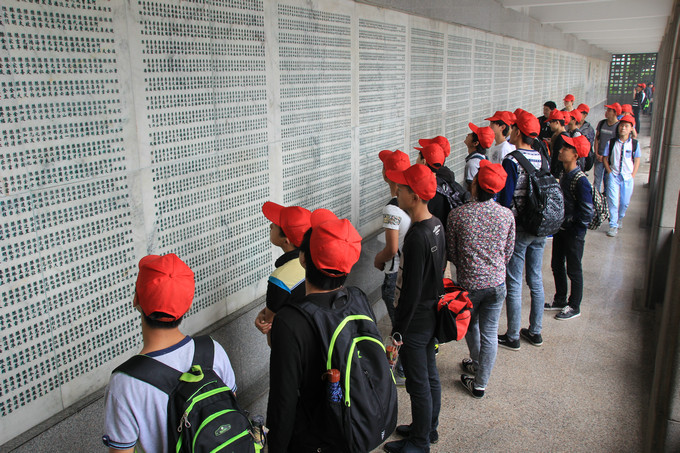 来到纪念馆门口,学生们便被其朴实、宁静、现代、简洁的外部造型所感染。首先,学生们参观纪念馆陈列厅。陈列厅分为四个体块,分为序厅、战前形势、战役实施、战役胜利、人民支前、缅怀先烈、全景画馆七大部分。展厅共展出珍贵的文物、照片、艺术品和制作品近3000件,生动展示了淮海战役胜利的进程,揭示了战役胜利的诸多因素及伟大意义。室内陈列根据淮海战役战例设15个战争场景,结合板面、文物说明,以现代化手段再现当年战争场景。参观过陈列厅后,学生们均被其庄严所感染,不禁对伟大的中国革命战士产生深深的敬佩之情。之后,学生们来到纪念馆的主导景点—淮海战役纪念塔。纪念塔高大宏伟,前辈们为了新中国的成立,革命烈士抛头颅洒热血,值得我们崇敬和深深缅怀。