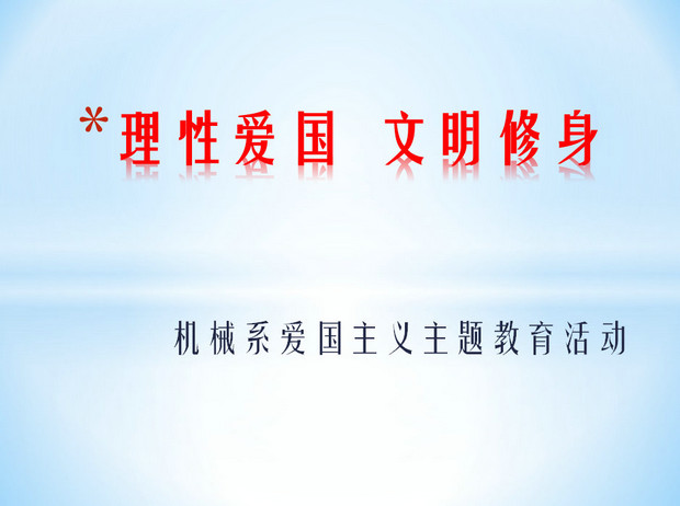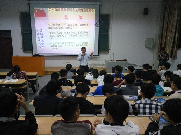 既然是爱国主义主题教育活动,首先应了解祖国,关注国家大事,拥有强烈的民族自豪感和自信心;爱国还体现在一种“以天下为己任”的责任感和使命感,并落实在我们的实际行动中,为了上好这堂课,机械工程系党总支书记柯于辉老师,没少下功夫,主要体现在以下几个方面: