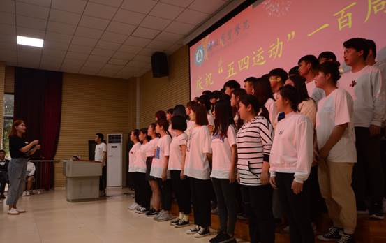 为纪念五四运动,传承爱国精神,4月24日,我校对外交流合作处易欢、吴朝辉、陈俊铭三位老师配合湖北商贸学院(咸宁校区)举办了“庆祝五四运动100周年爱国歌曲合唱比赛”活动。