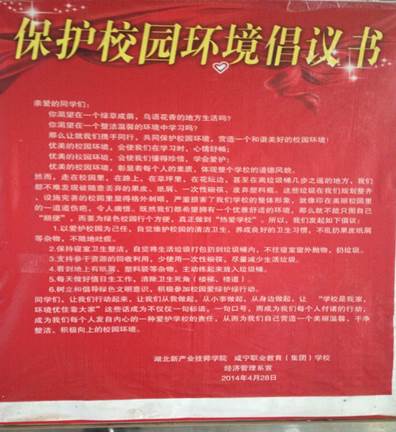 为了响应保护校园环境倡议书,为了让我们的校园环境更加舒适整洁,经济管理系组织志愿者大扫除活动,于2015年3月31日下午,开展了一次对教学楼及食堂周边卫生死角进行环境卫生大整治的活动。