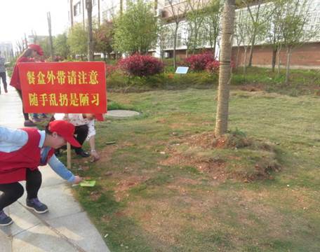 (上图为经济管理系志愿者在教学楼楼下捡垃圾)