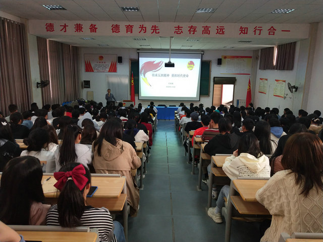 活动开始,首先由校团委负责人王际清同志对青春团校进行简要介绍;学工处处长陈伟同志致贺词;校工会主席任贤俊同志为团校22名受聘核心教师颁发了聘书。随后,团校秋季第一讲正式开始,任贤俊同志以《传承五四精神,勇担时代使命》为题,从共青团的历史、五四精神的定义及时代内涵、五四精神的具体内容、五四精神践行的代表人物故事、学习五四精神的重要意义、学思践悟,交流思想五个板块一一展开。