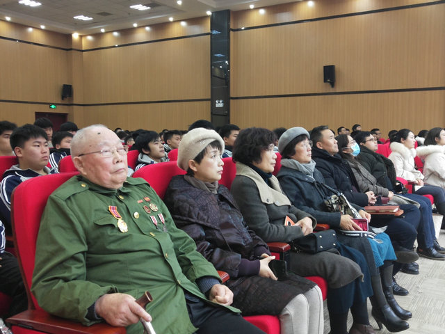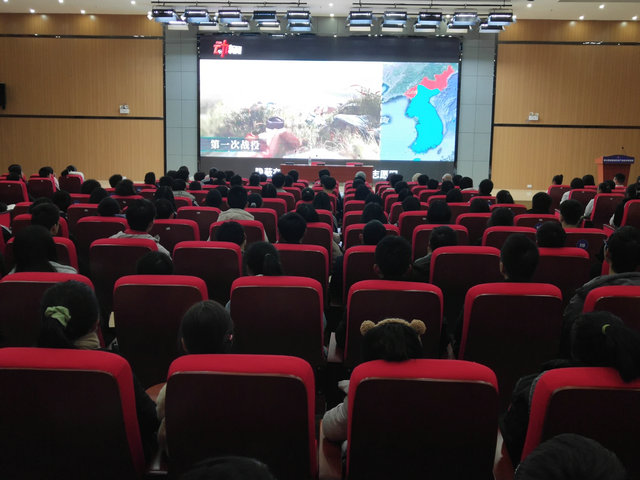 活动伴随着激扬的中国人民志愿军战歌拉开序幕,观看完一部6分钟的抗美援朝简介短片,贺友柏老人走上讲台与大家分享他亲历的战斗故事。老人今年已是88岁的高龄,但思路清晰,语言幽默,数据详实,铿锵有力。