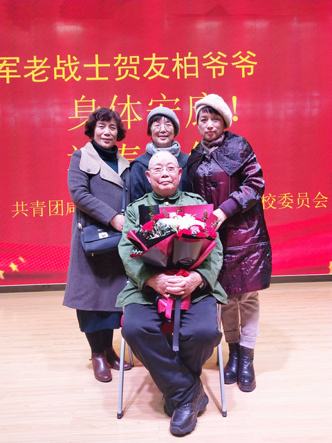 校团委于12月16日在启迪之星(咸宁)路演厅,举办团校秋季第三期“致敬最可爱的人---志愿军老战士讲过去的故事”专题活动。荣幸的邀请来志愿军老战士贺友柏老爷爷,为我校400余名师生讲述自己亲身经历的抗美援朝战斗故事。老人的讲述分为五个部分,分别是:艰难的坑道战、光荣负伤、三打马拓里、最后的战役、学无止境。