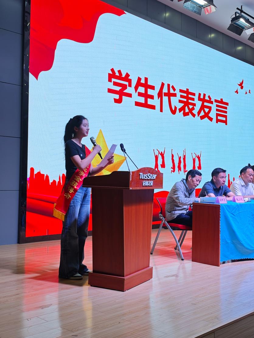 学生代表杨紫涵用自己的亲身经历,讲述了在学习和生活中克服困难、不断进步的故事,激励广大学生积极投入到学习中,以坚定的信念和无畏的勇气,勇往直前,去寻找属于自己的光明未来。他们的发言引起了台下师生的强烈共鸣,现场掌声阵阵。
