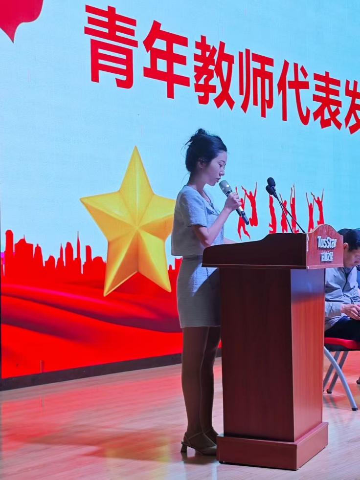 青年教师代表沈雨潇分享了自己在教育工作中的感悟与成长,勉励青年教师们坚守教育初心,不断提升自我,为学生的成长和学校的发展贡献青春力量。