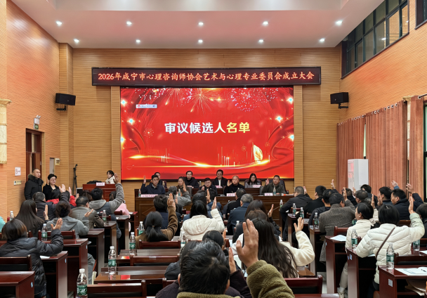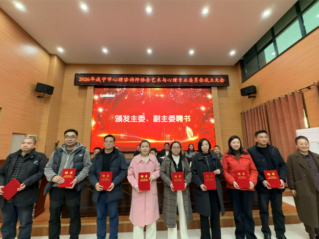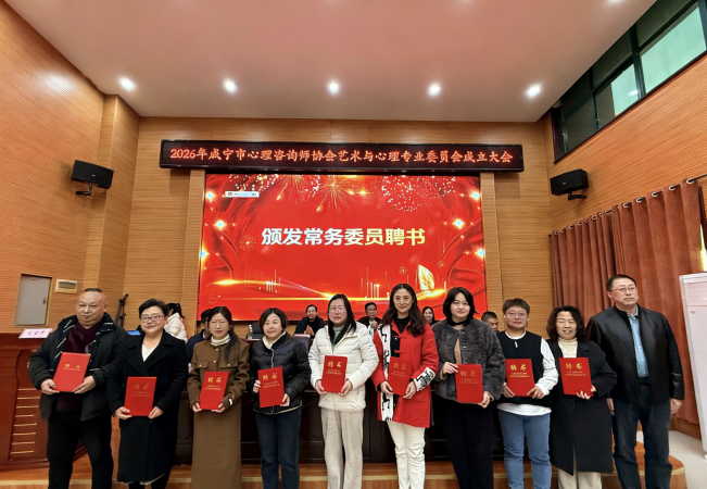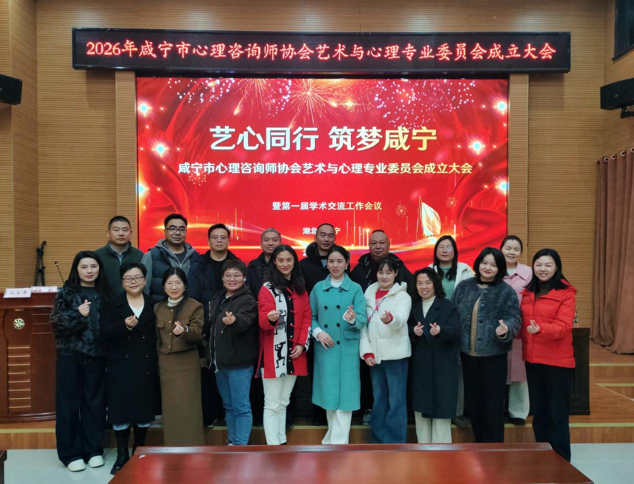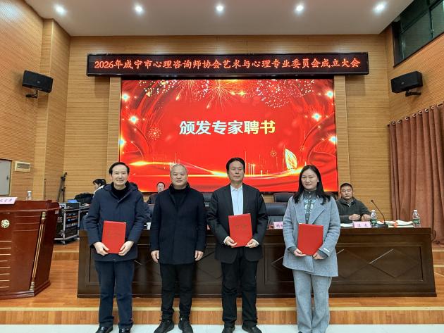 2026年1月14日下午3时,咸宁市心理咨询师协会艺术与心理专业委员会成立大会在我校隆重举行。市社科联、市心理咨询师协会、湖北科技学院、咸宁阳明心理医院等单位领导、专家学者,以及我校师生代表齐聚一堂,共同见证这一推动区域教育融合创新的重要时刻。