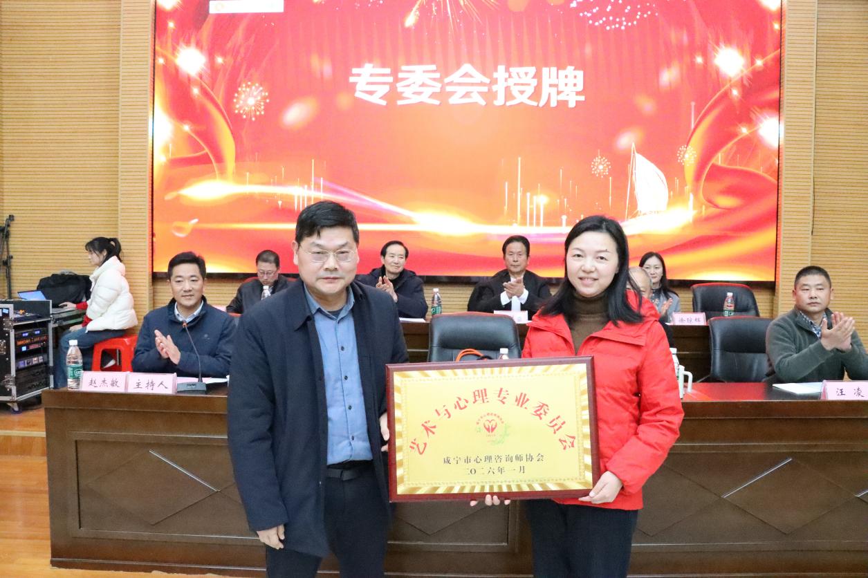 接下来 ,市社科联党组书记刘志华同志向专委会授牌。湖北科技学院教授王群益、咸宁职业教育(集团)学校原副校长刘旭川、咸宁阳明心理医院院长祝家胜、咸宁市中心医院徐琼辉等业内权威专家受聘为专委会顾问,我校相关骨干教师及行业优秀代表组成核心委员团队,为专委会专业化、规范化发展提供了坚实保障。