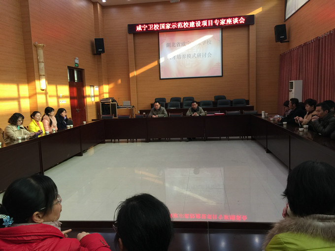 2015年1月15日上午,咸宁卫校国家示范校项目“人才培养模式与课程体系改革专家座谈会”在职教园行政楼二楼大会议室内召开,副校长樊斌同志代表学校致欢迎词,国家示范校创建办公室主任毛三列同志主持会议。