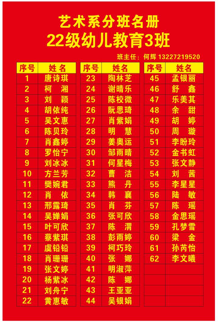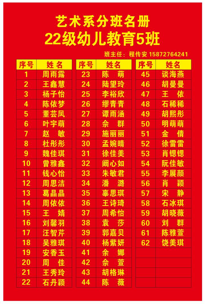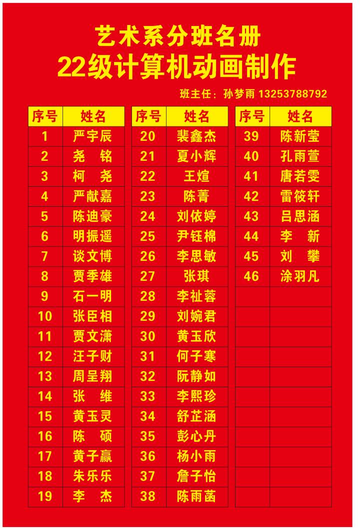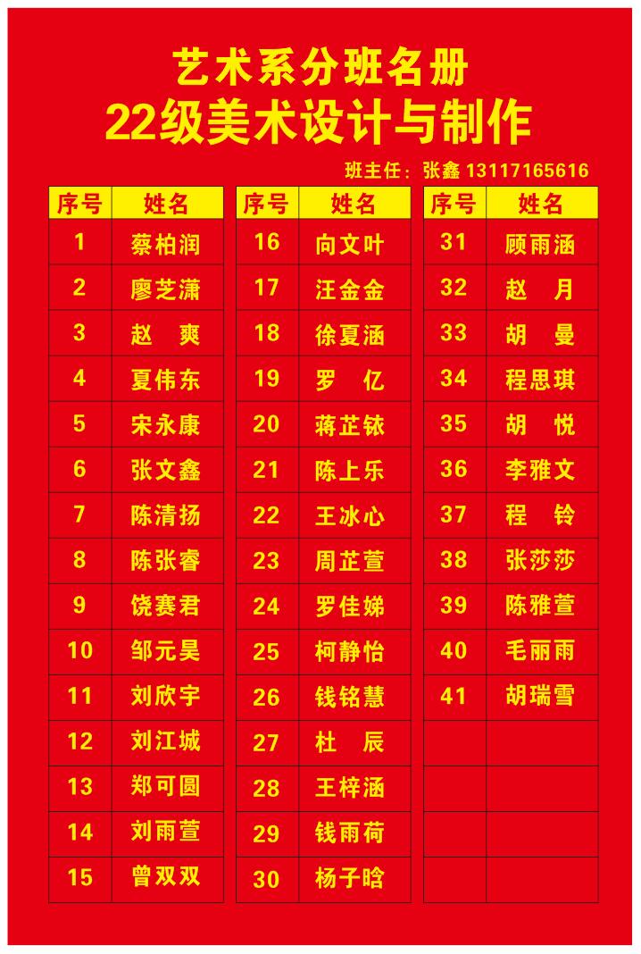 艺术系分班名册(2022)