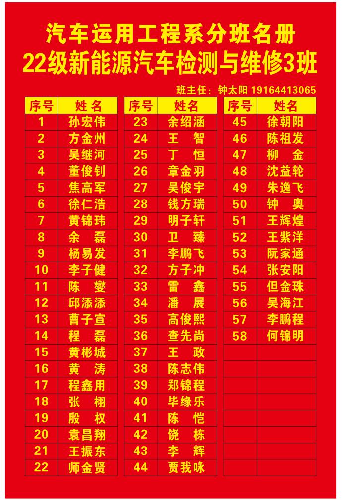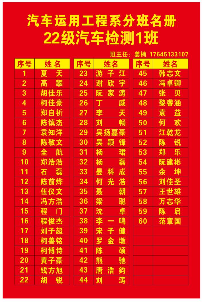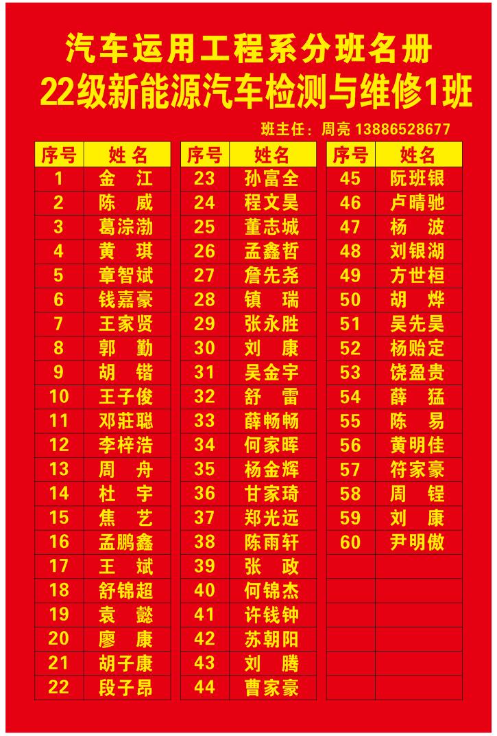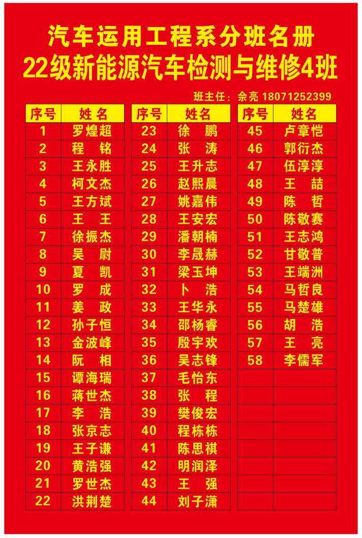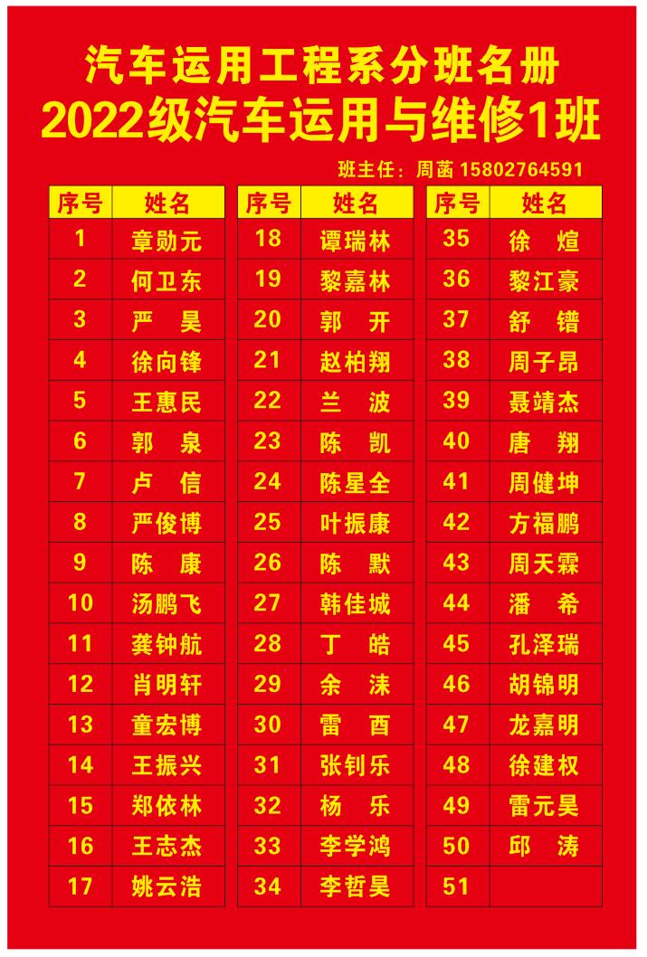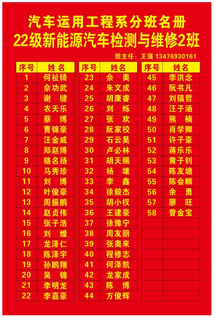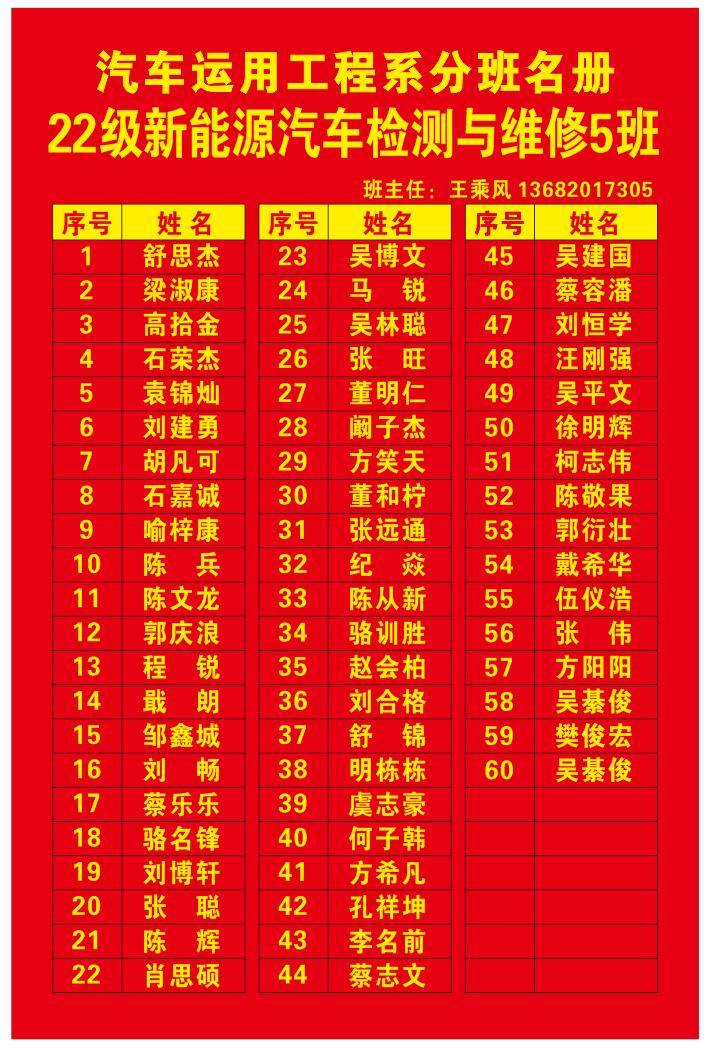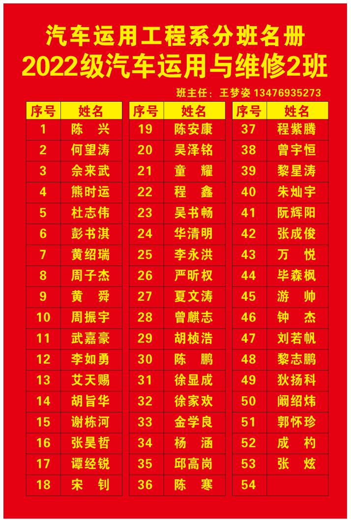 汽车系分班名册(2022)