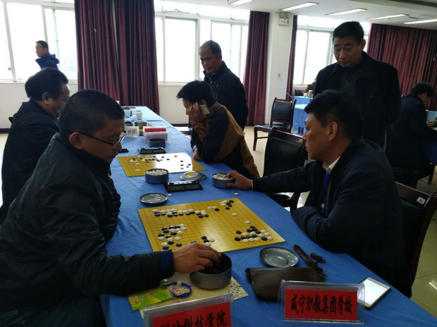 为丰富教职工业余文化生活,以实际行动迎接党的十九大胜利召开。我校工会按咸宁市总工会通知要求,积极组队参加2017咸宁市职工围棋赛。由皮远荣主任带领彭方明、卢志宏、叶春海三位老师从10月17日至10月19日历时三天的竞赛,最终我校教职工围棋队荣获团体总分第四名的好成绩。