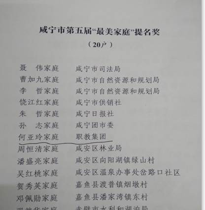 同时祝贺我校何亚玲家庭获咸宁市第五届“最美家庭”提名奖!!
