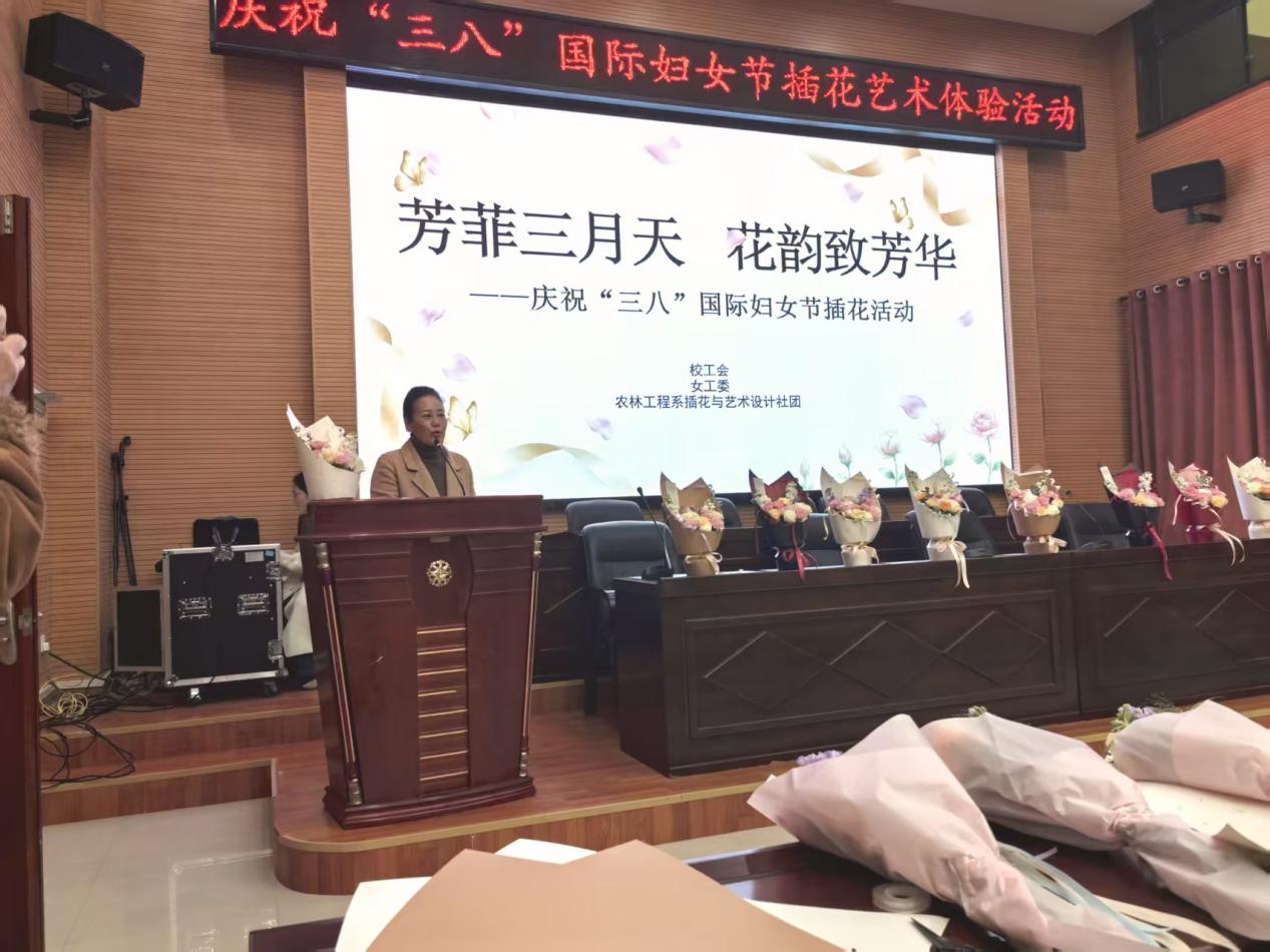 致辞环节结束后,活动进入插花教学与创作体验阶段。学校特邀农林系曾君涵老师现场授课,从花材选择、色彩搭配、造型构图等方面进行细致讲解与示范,带领女教职工们领略花艺之美。随后,女教职工们投入DIY创作,现场备齐的各色鲜花、精致花器与工具,为大家提供了充足创作素材。大家修剪枝叶、搭配花色、固定造型,相互交流协作,指尖翻飞间,零散花材渐成形态各异的花艺作品,粉色浪漫、白色纯净、紫色静谧,一件件作品勾勒出春日最美风景,也承载着大家对生活的热爱。