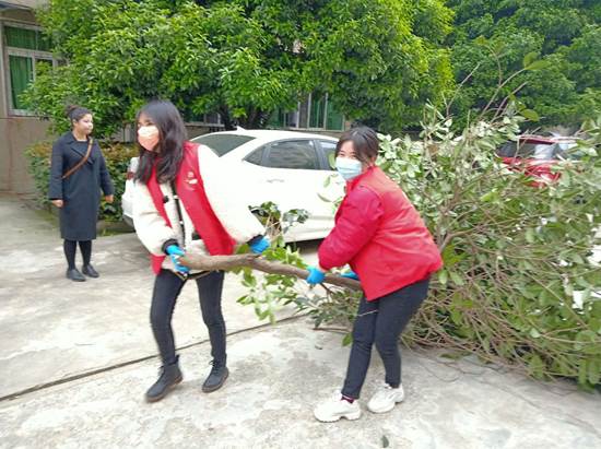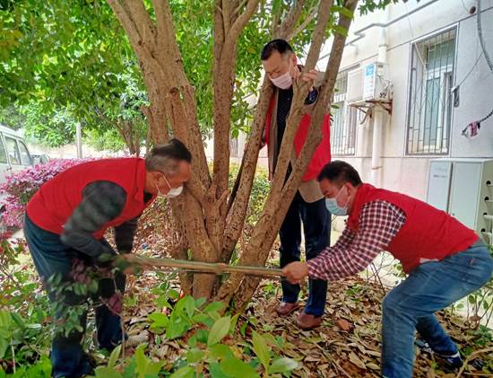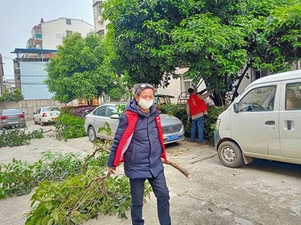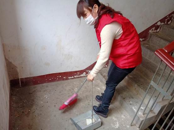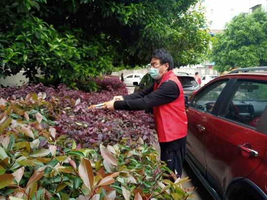 五、开展爱国卫生运动,对小区所有楼道、公共卫生区域进行彻底清理打扫,修剪桂花树枝,清理花圃杂物。
