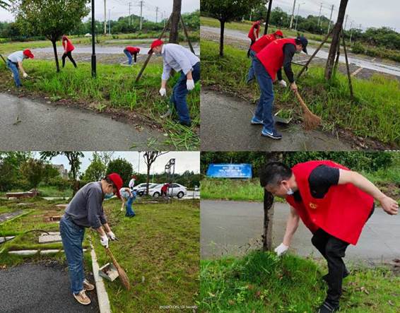5月15日,阴雨连绵。农林工程系党支部教职工再次到温泉嫦娥广场、甫兴社区进行清除杂草,修剪苗木,做好保洁等工作。