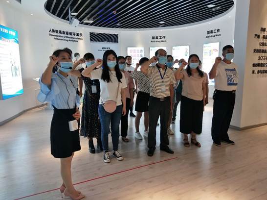 在第33个国际禁毒日来临之际,为提高党员干部的禁毒意识,自觉抵制毒品侵袭,积极参与到防毒宣传和禁毒斗争中来。2020年6月10日下午,电子信息系党支部10名党员、入党积极份子黄晶, 深入到咸宁市青少年禁毒宣传教育基地参观学习。