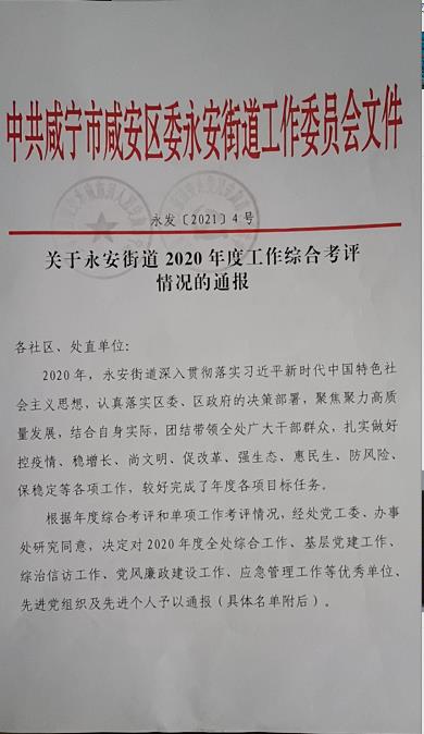 2020年度,咸安区永安办事处对辖区215个小区开展综合考评,评出了14个红旗小区党支部,学苑园小区作为凤凰社区唯一小区被咸安区永安街道办事处评为红旗小区党支部。这份荣誉既属于学苑园小区,同时也是咸宁职业教育(集团)学校的荣誉,学苑园小区党支部将继续发扬基层战斗堡垒作用,发挥党员先锋模范带头作用,让红旗高高飘扬,让党徽熠熠生辉!