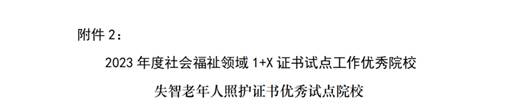 近日,由教育部指定的第三方培训评价组织——北京中民福祉教育科技有限责任公司公布了2023年全国试点工作优秀单位及先进个人的获奖名单,我校荣获2023年度“1+X”失智老年人照护证书试点工作优秀试点院校,这是我校第三年获此荣誉。