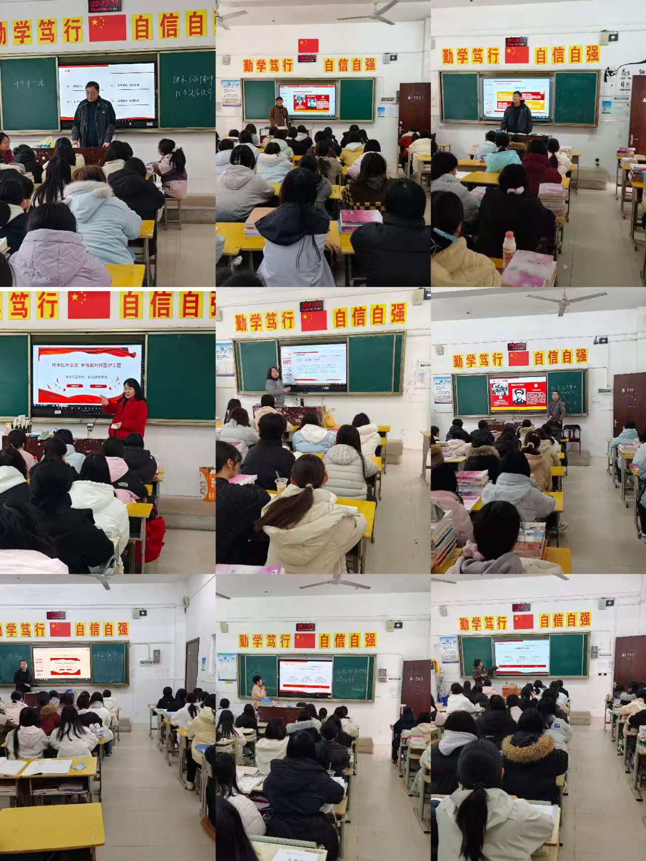 授课教师们结合专业特点与医学发展史,以一个个生动鲜活、感人至深的“红医故事”为切入点,深刻解读“红医精神”的时代内涵与核心要义。从战争年代简陋的红军医院里,医护工作者凭借坚定的理想信念和简陋的医疗器械,冒着生命危险救治伤员、守护战友;到新时代疫情防控战场上,医务工作者逆行出征、冲锋在前,用坚守与奉献筑起生命防线,每一个故事都直击人心,深深打动了在场的每一位同学。大家深刻认识到,“红医精神”的核心在于对党的绝对忠诚、对人民的无限热爱、对医学事业的执着坚守,这正是新时代医学生必须传承和弘扬的宝贵精神基因。同学们纷纷畅谈感悟、表态践行。2023级护技1班学生黄珍珍说道:“聆听老一辈医务工作者的红色故事,让我真切体会到‘健康所系,性命相托’的誓言重量。我们将以红医先辈为榜样,学习专业知识、锤炼专业本领,传承红色基因,努力成为一名有温度、有担当、有技艺的新时代医护工匠。”