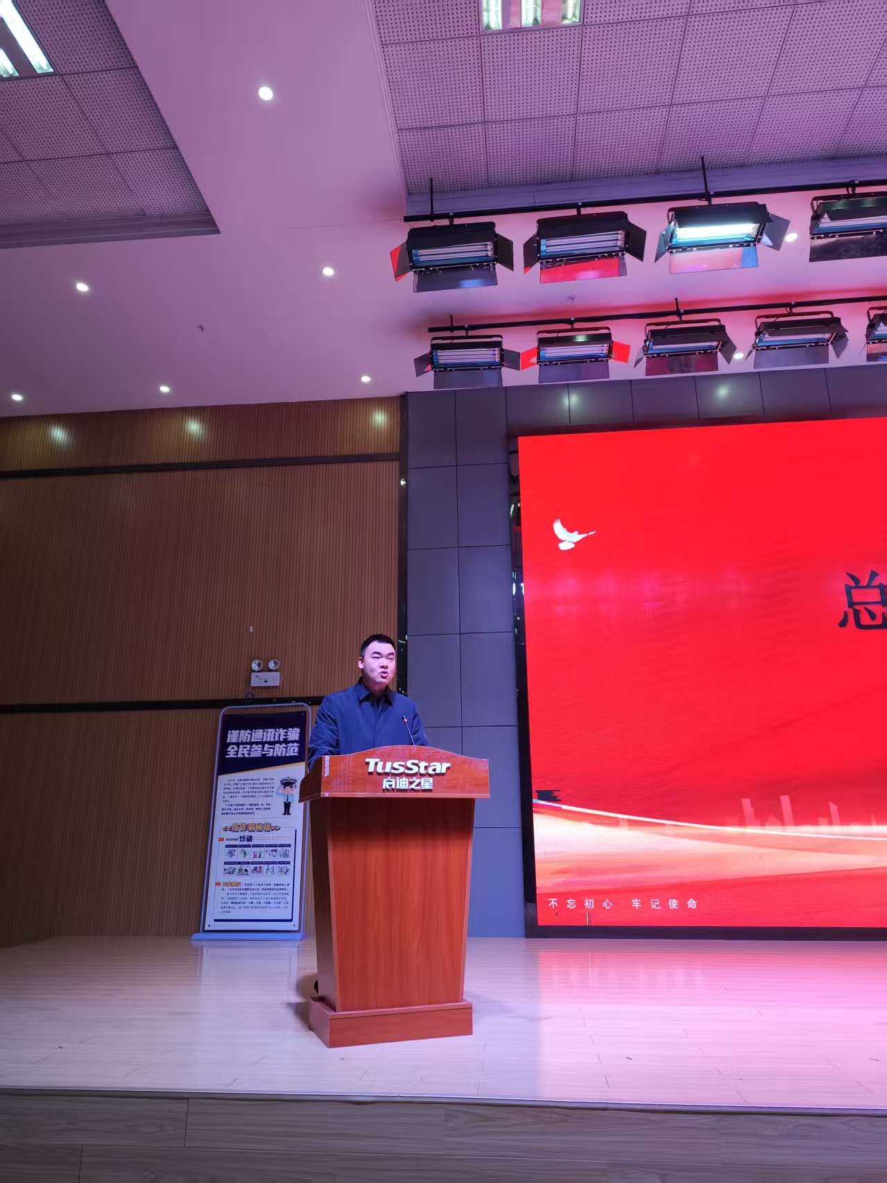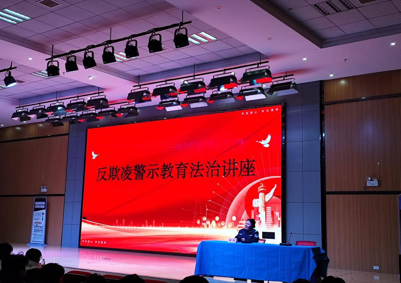 机械工程系负责人贾相志上台致辞。他强调,青少年是国家未来、民族希望,法治安全是学生成长成才的基本保障,反诈防欺凌是校园安全的重要防线。希望全体同学能以此次宣讲为契机,学法懂法、守法用法,提高辨别是非和自我保护的能力,远离电信诈骗与校园欺凌,争做懂法守法的新时代中职学子。
