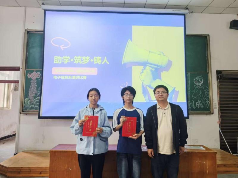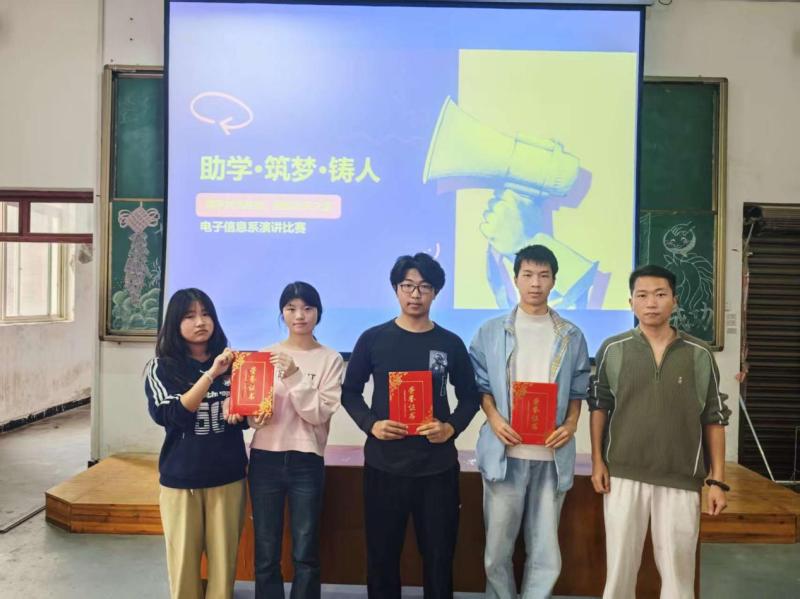 为深入贯彻国家资助政策,充分发挥资助工作的育人功能,引导学生树立“受助思源、励志自强、立志成才”的价值观,2026年4月10日,电子信息系在阶梯教室开展了“助学·筑梦·铸人”主题演讲比赛。学工科科长樊高原,以及余浪平、徐辉、刘昊、黄江琛、李旺珊老师受邀担任本次比赛评委,电子信息系各班级学生代表到场观赛,共同见证这场关于梦想与感恩的青春盛会。