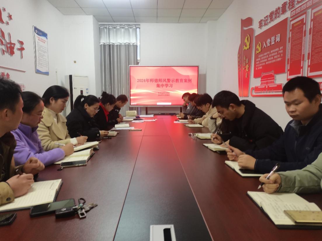 会议集中观看学习了《违反师德师风警示录》视频,并由孙家锐同志领学了《师德师风警示教育典型案例汇编》《中小学教师违反职业道德行为处理办法》《教师课堂教学行为规范“二十条”》等文件。旨在以案为戒、以案为鉴、以案明纪、以案促改,引导大家进行反思,时刻保持清醒与警惕。