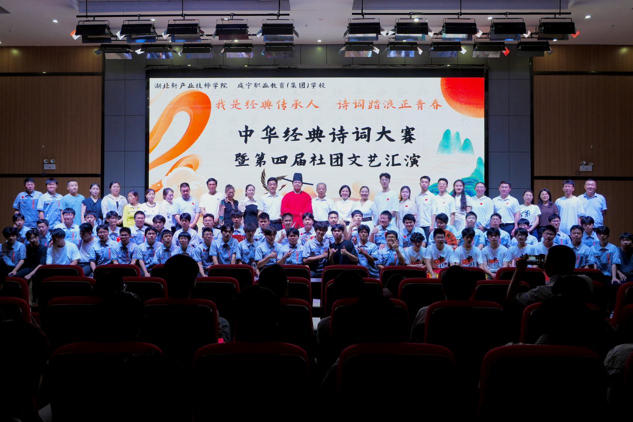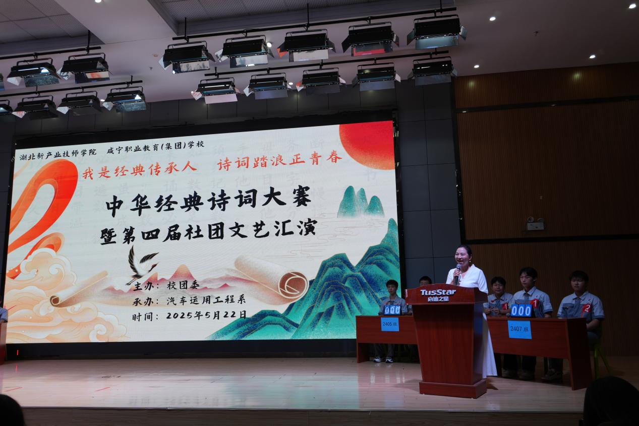 为深化传统文化育人实效,构建多维美育实践平台,展现社团文艺风采,在共青团咸宁职业教育(集团)学校委员会指导下,由汽车运用工程系承办的"中华经典诗词大赛暨第四届社团文艺汇演"于2025年5月24日在启迪之星报告厅盛大启幕。校党委书记明继武、校长易元红携领导班子成员,与400余名师生家长共同见证传统文化与青春激情的创新对话。