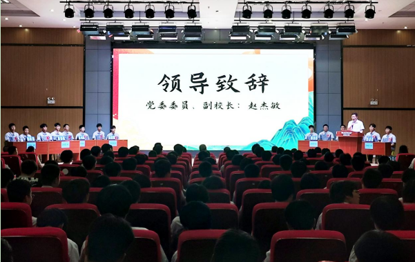 当鎏金话筒在主持人手中折射出璀璨光芒,大赛正式拉开帷幕。校党委委员、副校长赵杰敏以“我是经典传承人,诗海踏浪正青春”为题致开幕辞,构建出立体化育人图景:其一,以诗明志--在诵读中感悟先贤的家国情怀,树立远大理想;其二,以诗启智--在比拼中锤炼思维,提升人文素养;其三,以诗会友--在交流中增进情谊,展现团队风采。这番致辞为整场活动定下“守正创新”的鲜明基调。