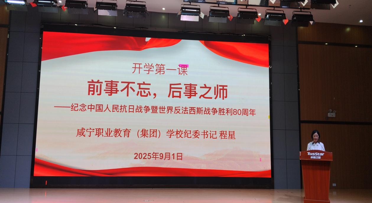 校纪委书记程星以《前事不忘,后事之师——纪念中国人民抗日战争暨世界反法西斯战争胜利80周年》为主题,系统阐述了中国作为东方主战场为世界反法西斯战争作出的巨大牺牲与贡献。她指出,中国人民抗日战争是近代以来中国第一次取得完全胜利的反侵略战争,不仅重塑了民族命运,也为战后国际秩序奠定基础。她强调,新时代青年要坚定历史自信、捍卫胜利成果,从抗战精神中汲取奋进力量,走好技能报国之路。