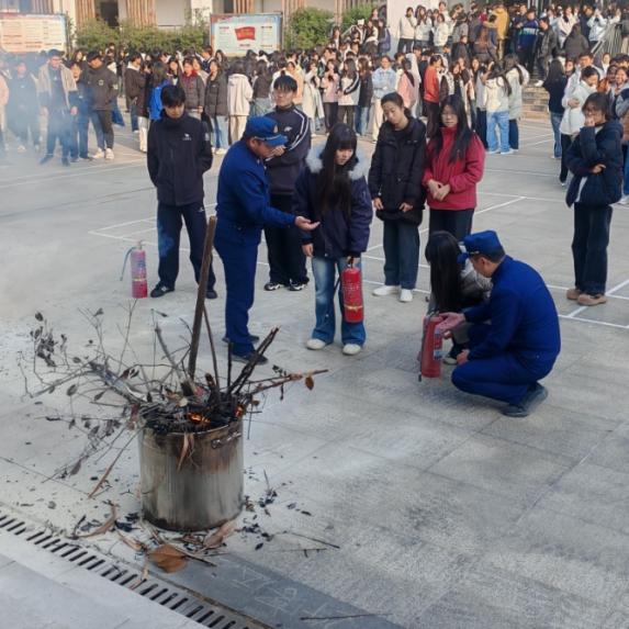 随后,咸安区消防支队消防教官亲临现场,为大家带来专业且实用的消防知识讲解。教官不仅现场演示了灭火器的正确使用方法,还详细讲解了火灾初期的扑救技巧。为加深师生印象,教官还邀请师生代表上台进行实操体验,让大家在亲身体验中掌握灭火技能。