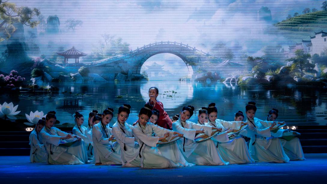 作为一部深耕本土文化的原创精品,《桥见咸宁》以“桥”为魂,巧妙串联起咸宁的自然禀赋与人文记忆。舞台上,淦河水袖翩跹映照着河川生机,茶山晨雾中舞者轻舞采茶韵律,荡漾着制茶人的烟火温情;青石桥通南北坦途,茶砖桥联东西情谊,藏尽咸宁通达包容的城市品格。作品以咸宁桂花镇古桥的千年风骨与省级非遗“生甡川茶”的四百年荣光为经纬,采用时空交错的艺术手法,让古桥石阶上的茶马古道足迹,与新时代茶旅融合的蓬勃活力交相辉映。舞者们以灵动肢体为笔,既书写着“万里茶道”上的非遗传奇,也描绘着青砖茶产业创新发展、香飘四海的时代新篇,终凝“桥通四方,万国咸宁”的美好期许,生动诠释了川流不止、生生不息的生命力。